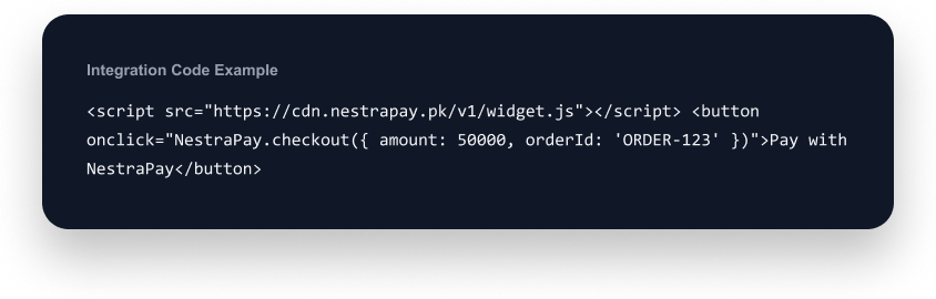Quick setup for any platform: Shopify, WooCommerce, custom APIs, POS terminals, and QR payments.